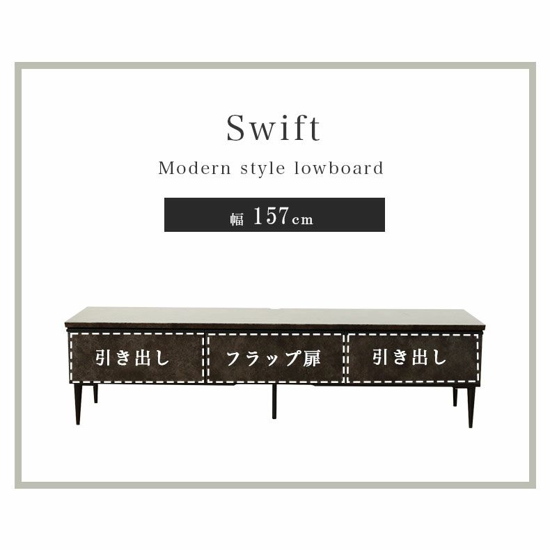 高級感ある石目調ハイグロス仕上げのモダンな国産ローボード「スウィフト」。