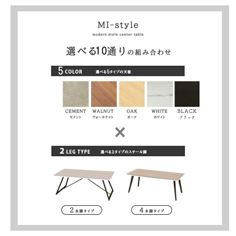 天板4タイプと脚部2タイプから選んで自分好みに作るセンターテーブル「MIスタイル2」。天板には熱やキズに強いメラミン加工を施しました。