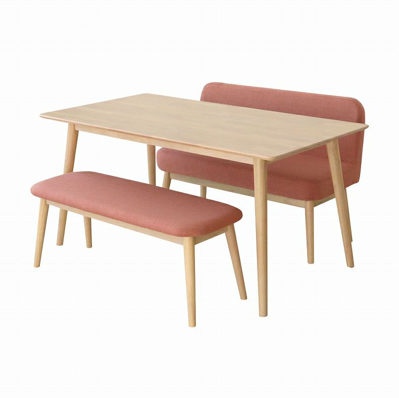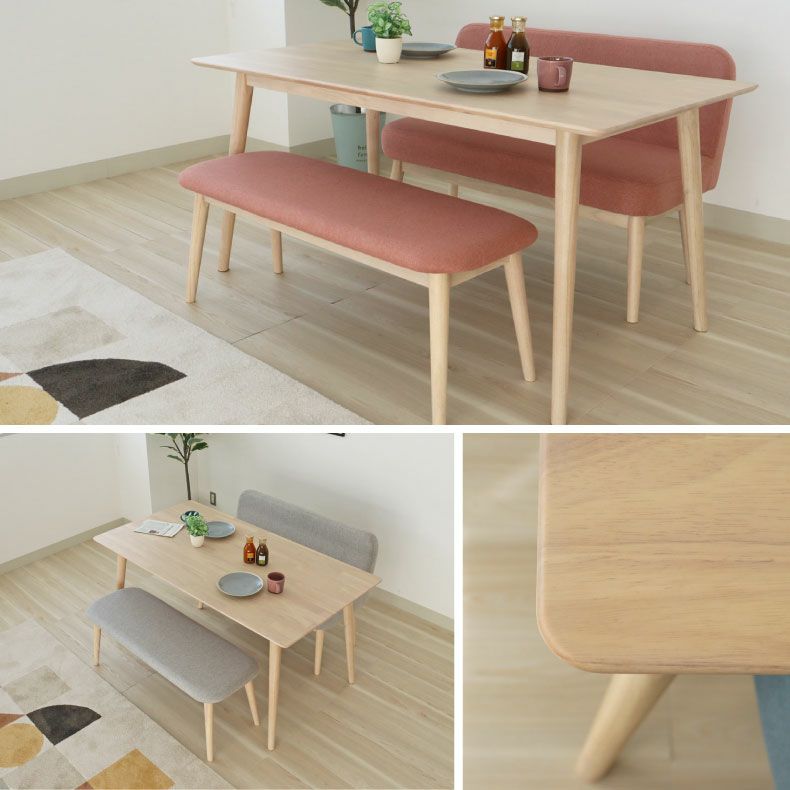 #ダイニングセット#ダイニングテーブルセット#食堂#3点セット#4人用#4人#4脚#ダイニング#ベンチセット#GY#グレー#グレイ#灰色#PI#PK#ピンク#BL#ブルー#青#オリジナル#ウレタン塗装#木製・木目調#天然木無垢天板#ファブリック座面