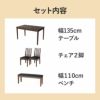 #ダイニングセット#ダイニングテーブルセット#食堂#4点セット#2人用#4人#2脚#ダイニング#ベンチ#センチ#BE#ベージュ#生成り#BR#ブラウン#茶色#オリジナル#木製・木目調#天然木突板天板#スクエア型#アジャスター有#合皮座面#木脚