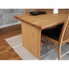 ストレート天板とパネルカット脚の直線的フォルムのテーブル「ナイン3」。天板・脚部共に、オークの無垢材を贅沢に使用。