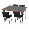 異素材ミックス天板が存在感抜群のヴィンテージ調ダイニング「メイ」。熱やキズ、汚れに強いメラミンは水濡れにも強く、汚れてもサッと乾拭きするだけ。