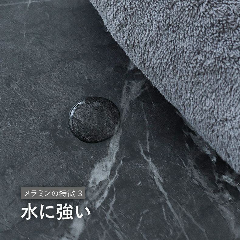 耐久性、耐熱性に優れ、キズや焼け跡、汚れがつきにくいメラミン天板。