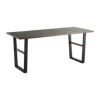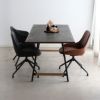 ストーン調の天板とスチール脚を組み合わせたモダンダイニングテーブル「TUM」。天板周りに質感に優れた無垢材を使用し、心地よい空間を作ります。