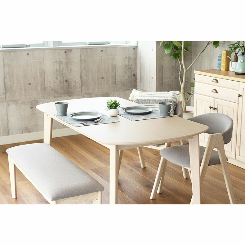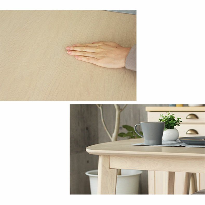 お部屋に馴染む北欧風ナチュラルダイニング「ロカ」。ホワイトの天板は木の風合いを楽しめるようにラッカー塗装を施しました。