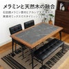 異素材ミックス天板が存在感抜群のヴィンテージ調ダイニング「メイ」。熱やキズ、汚れに強いメラミンは水濡れにも強く、汚れてもサッと乾拭きするだけ。