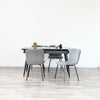 シンプルなフォルムの北欧風ダイニングチェア「カザール」。張地には温かみのあるコーデュロイを採用しています。