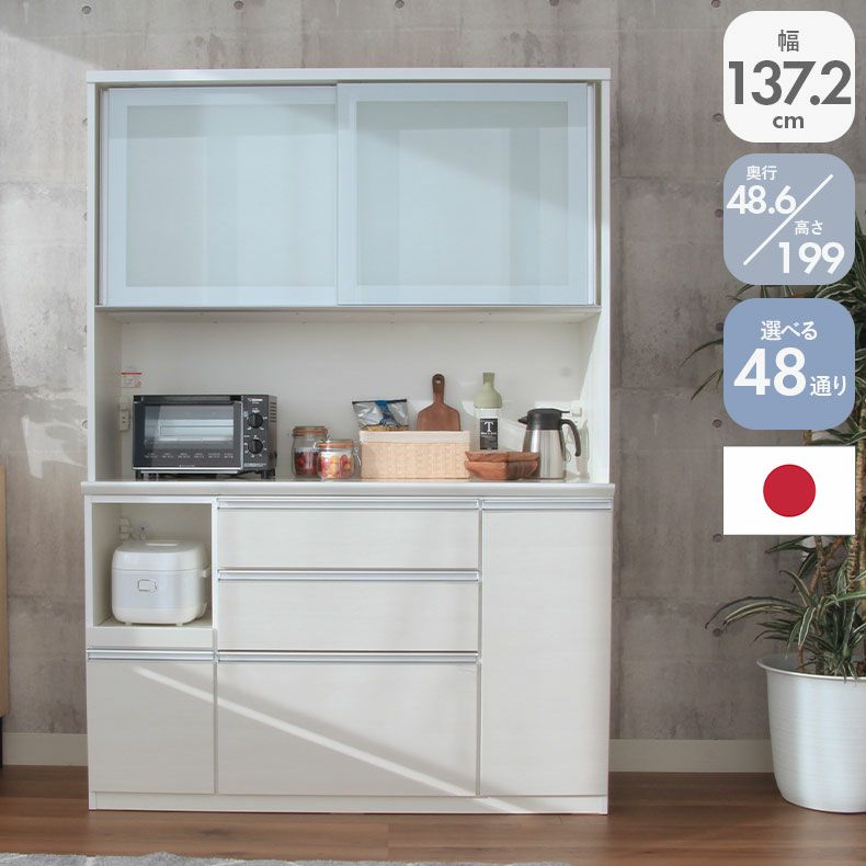 #食器棚#食器入れ#レンジ台#レンジボード#カップボード#水屋#水屋箪笥#キッチンボード#キッチンキャビネット#WH#ホワイト#白#国産#オリジナル#コンセント有り#フルスライド#モイス#上下分割搬入可