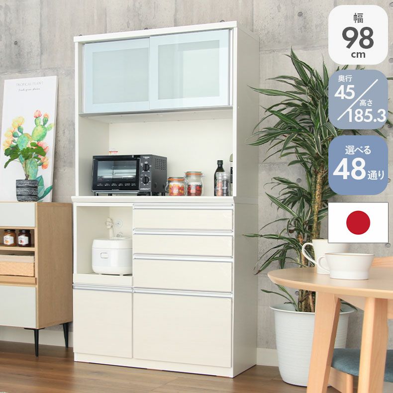 #食器棚#食器入れ#レンジ台#レンジボード#カップボード#水屋#水屋箪笥#キッチンボード#キッチンキャビネット#WH#ホワイト#白#国産#オリジナル#コンセント有り#フルスライド#モイス#上下分割搬入可