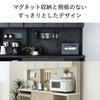 マグネットを貼り付けられる浮かせる収納と仕切られない開放感のあるデザインで楽しく見せる収納棚です。