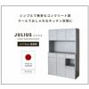 シンプルで無骨なコンクリート調の強化シートを採用した食器棚「ユリウス」。国内で企画から製造まで行われた安心の日本製です。