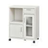 用途は電子レンジやオーブントースターなど、キッチン周りの物を置く事ができ、引き出しにはお皿やお鍋、おはし等のキッチンツールをしっかりと収納できます。
