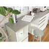 おしゃれなモルタル柄の天板は、硬く耐久性に優れたドイツ製のメラミン樹脂素材。