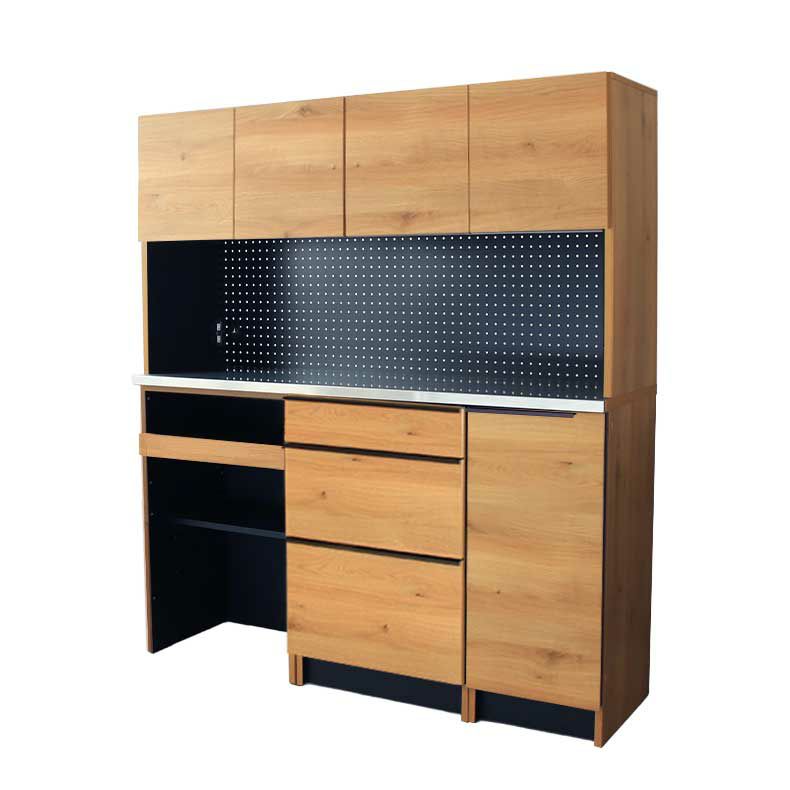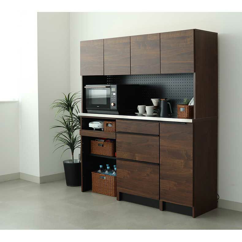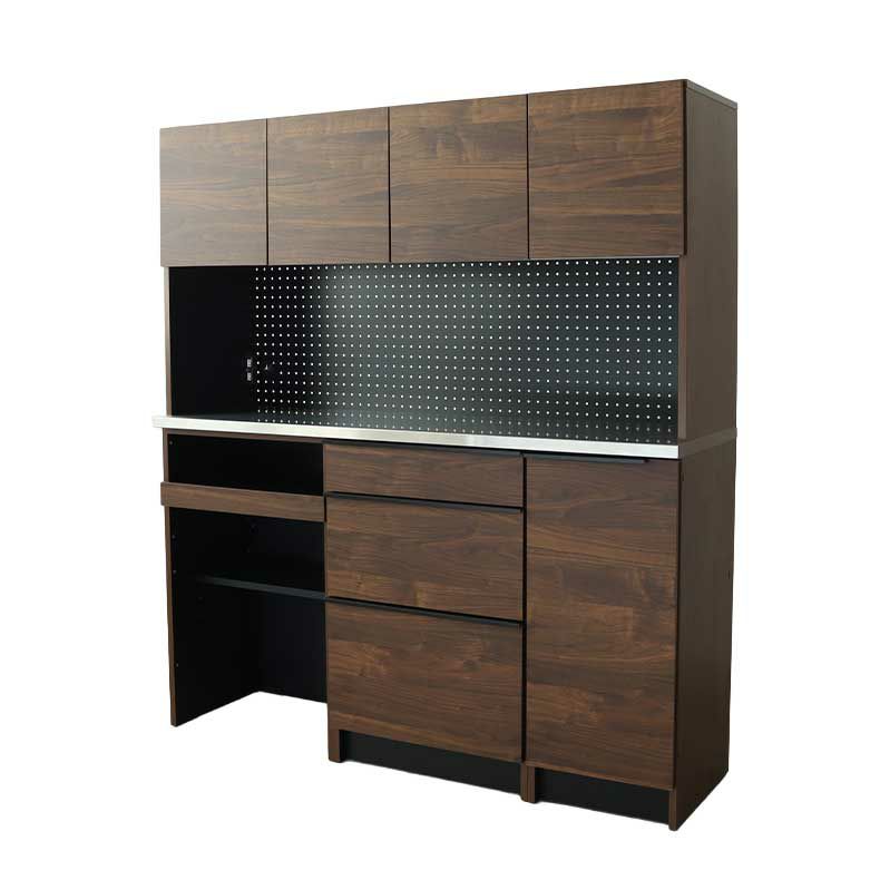 特にスライド棚には炊飯器や電気ポッドを収められる他、最上段に調節すれば配膳時の作業台としても。