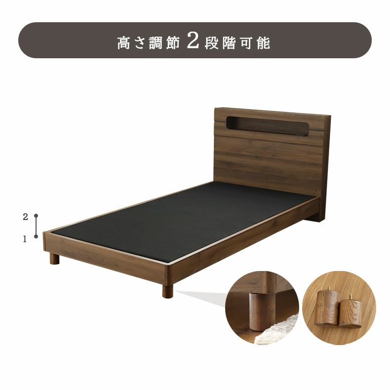 PVC樹脂に木目調プリントの耐久性にすぐれたベッド「ウィロー2」。自分に合った高さに調整可能。LED、1口コンセント付き。