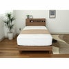オシャレな木目調シートを採用したベッドフレーム。サイドの棚やコンセントなど、無駄が無く眠る前の時間を快適に過ごせます。