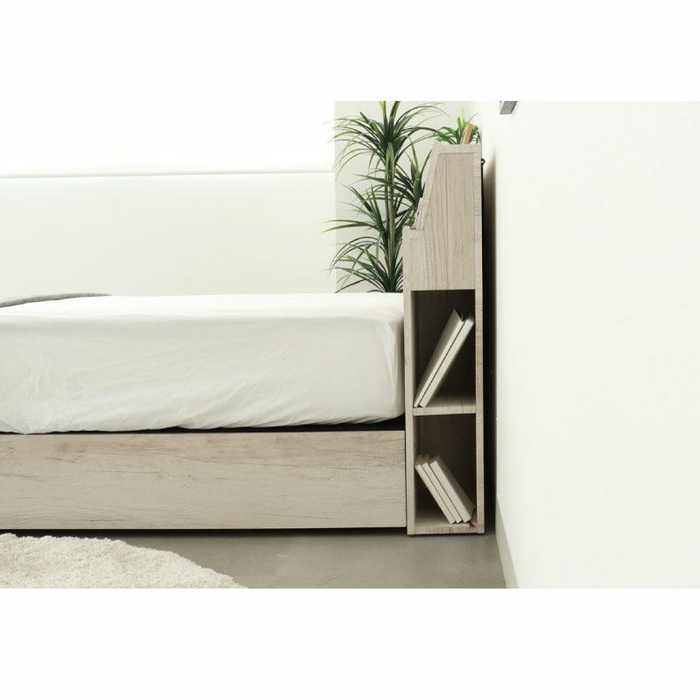 ヘッドボードのサイドにはA4サイズが収納できる棚が左右に付いています。