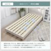 | サイズ | シングル:幅99×奥行209×高さ85×床面高24(cm) セミダブル:幅122×奥行209×高さ85×床面高24(cm) ダブル:幅142×奥行209×高さ85×床面高24(cm) クィーン:幅162×奥行209×高さ85×床面高24(cm) |