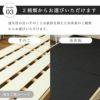 | サイズ | シングル:幅97.8×奥行202×高さ78.7×床面高24(cm) セミダブル:幅122×奥行202×高さ78.7×床面高24(cm) ダブル:幅142×奥行202×高さ78.7×床面高24(cm) |
