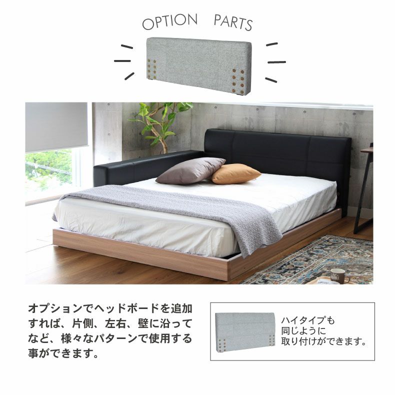 様々なカスタマイズを楽しめるロータイプのベッドフレーム「アドリア」。選択中の商品はヘッドタイプ「ハイタイプ(コンセント有)」、「フットボード有りタイプ」、床板タイプ「すのこ床板タイプ」です。*フット部分のボードは固定となり、左右へ取り付け変更できませんのでご注意ください。
