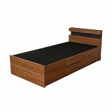 ライトとコンセントを備えた宮付きのベッドフレーム。大容量の収納を備えたタイプです。