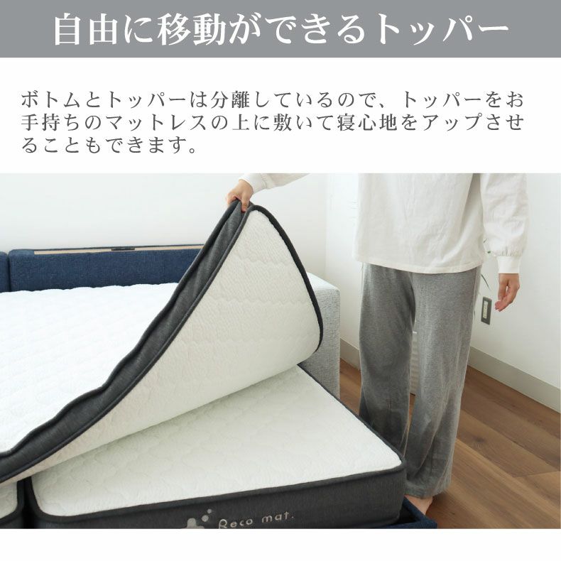 トッパーは大きな1枚サイズとなり、クイーンやキングサイズでも寝返りがしやすくなっています。