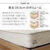 | サイズ | シングル:幅97×奥行195×高さ26.5(cm) セミダブル:幅120×奥行195×高さ26.5(cm) ダブル:幅140×奥行195×高さ26.5(cm) クイーン:幅160×奥行195×高さ26.5(cm) |
