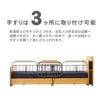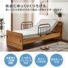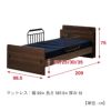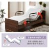 床面高さ4段階調整、4つ折りマットレス付き、手すり2本付き、安全ネット付き。杢目調が心やすらぐ棚付き電動ベッド。