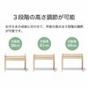 成長に合わせて、天板の高さを3段階調節が可能なデスク「ノスタ」。身体の触れる部分は面取り加工で丸く滑らか。