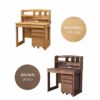 天然木の優しい木目を活かしたデスク、上置き、ワゴンの3点セット。学習デスクの天板と前板にはアルダー無垢材を使用。フルオープンスライドレールでA4サイズ対応のワイドな引出し2杯。