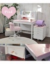 女の子の夢がつまったガーリーな学習デスク3点セット。デスク、上棚、ワゴンの3点セット。