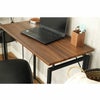 落ち着いたウォールナット柄の木目調天板とスチールフレームの異素材ミックス。
