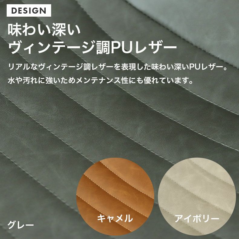 ヴィンテージ調の味わい深いPUレザーとブラックスチールの異素材MIXでインテリアにフィットするデザイン。
