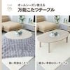 かわいいフォルムときれいな木目のこたつテーブル」。春夏はセンターテーブルとしてオールシーズンお使いいただけます。