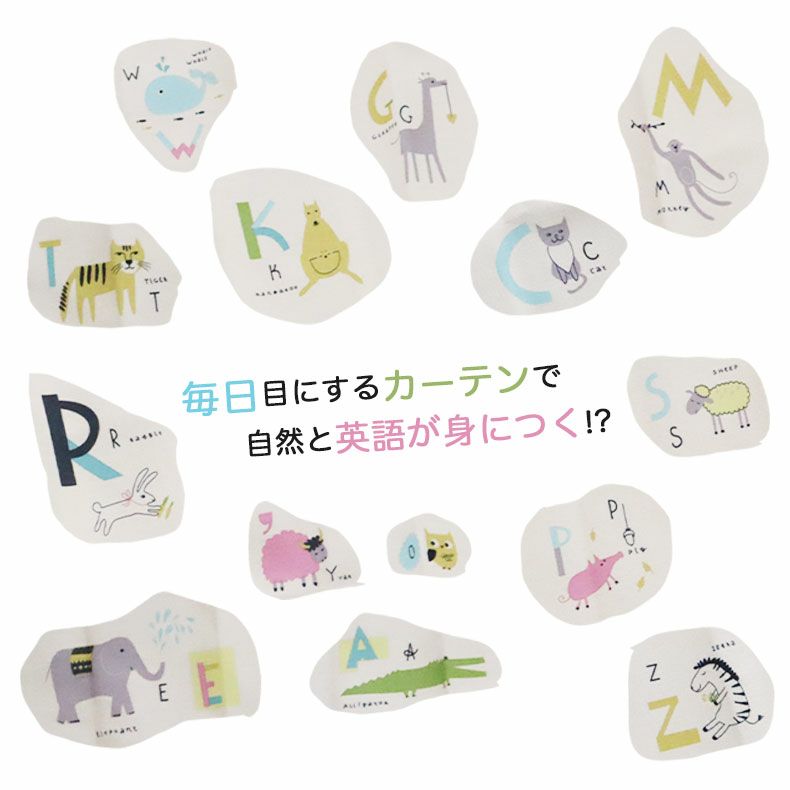 アルファベットと動物のイラストを組み合わせたキュートなデザイン。
