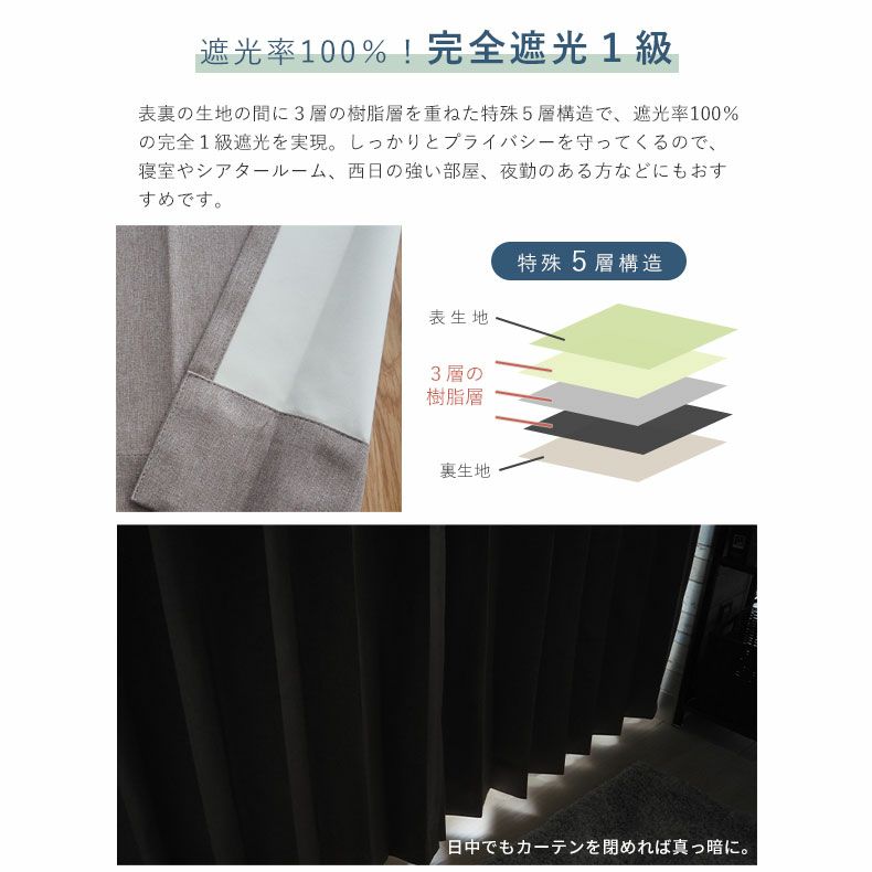 遮光率100%の完全1級遮光を実現。