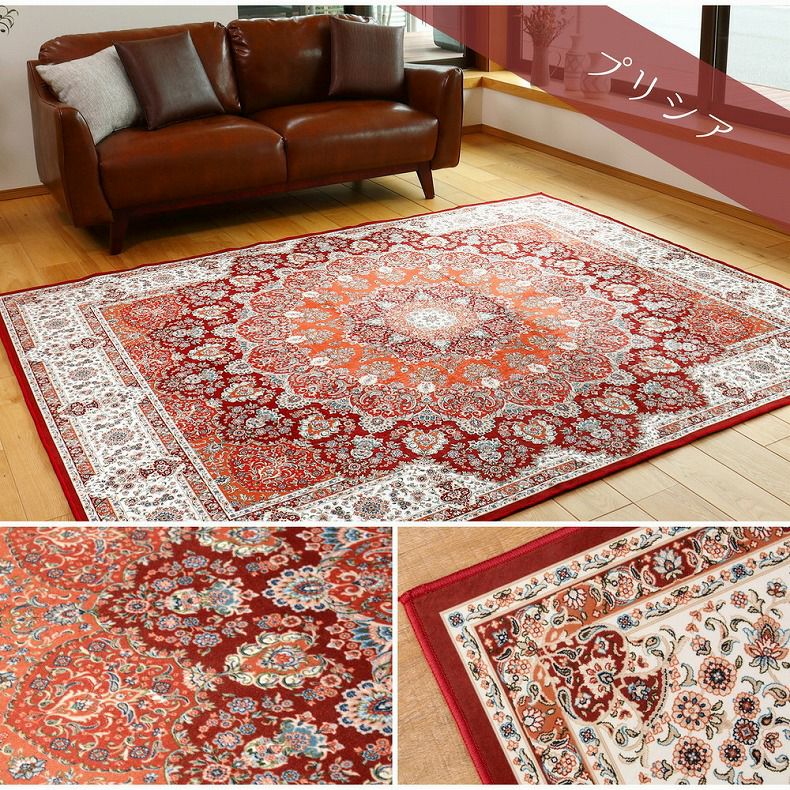 まるで高級絨毯のような転写プリントラグ。お手入れも簡単でオールシーズンお使いいただけます。