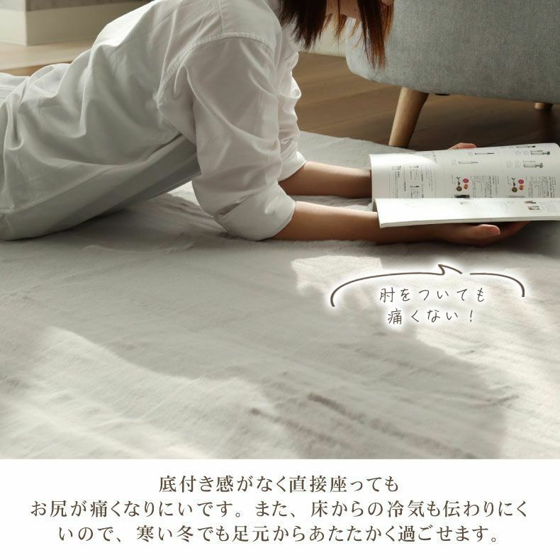 ふわふわな極上タッチのフェイクファーラグ「ロイヤルファー」。耐熱加工を施しているので、ホットカーペットや床暖房にも対応。安心の低ホルムアルデヒド。