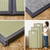 パッと広げて簡単畳スペース、4つ折り畳マットレス「伏見」。見た目はい草風ですが、水に強い樹脂素材で、汚れても水拭きできるからお手入れ簡単。