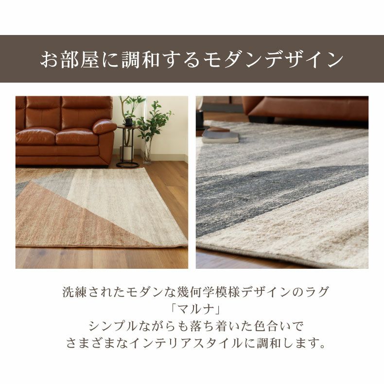 お部屋に調和する洗練されたモダンな幾何学模様デザインラグ「マルナ」。ホットカーペット・床暖房対応、防炎、遊び毛防止。