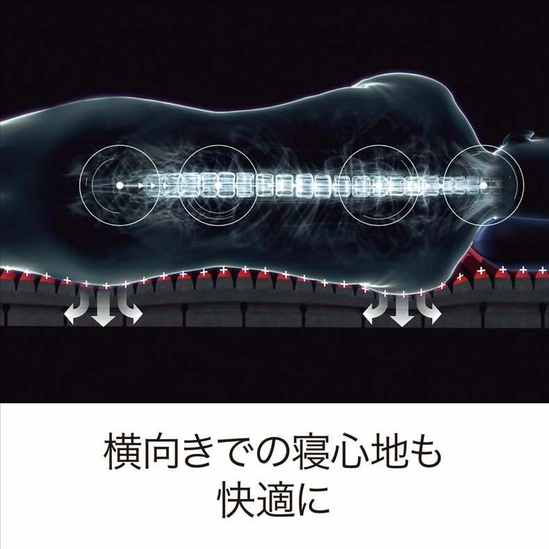 よりしっかりとボディラインにフィットし、寝返りもスムーズ。横向き寝にも対応します。