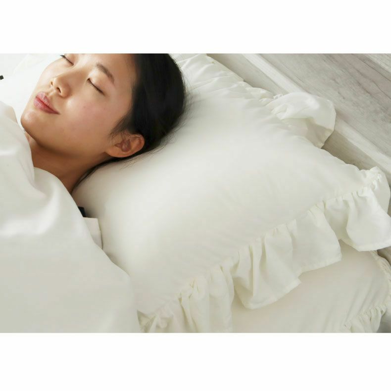 お部屋を華やかに彩る大人かわいいフリルデザイン「フリル」。洗濯ネットに入れて洗濯機で気軽に丸洗いができるので、いつでも清潔。