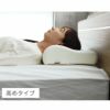 頭をやさしく包み込む「頸椎型モールド低反発枕」。選べる高さ2タイプ。