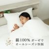 綿100%の2重ガーゼがお肌をいたわり優しく包み込む快眠寝具『ダブルガーゼ』夏はさらさら、冬はぽかぽかでふんわり感触をオールシーズンご利用いただけます。
