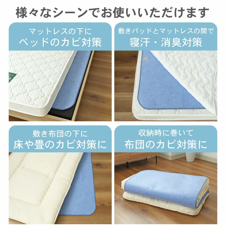 敷き布団やマットレスの下に敷くだけで、気になる湿気を吸収。