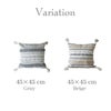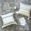 立体的な編み上げでナチュラルな雰囲気に仕上げたフリンジクッションカバー。表面にあしらわれた贅沢な刺繍やフリンジがアクセント。中身のクッションとセット販売ページです。