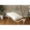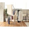 大容量でたくさん干せる伸縮ステンレス室内物干し「伸縮できるステンレスX型室内物干し フィール」。収納時には、厚さ約8cmととてもコンパクトに。1台あれば雨が続いても安心です。