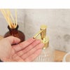 透明感と高級感のあるガラス製のソープポンプ&タンブラー「ヴェール」。ゴールドのポンプが美しく、上品な雰囲気を演出。