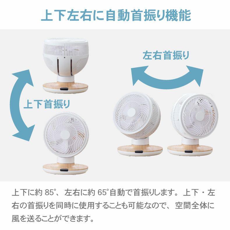 5枚羽根、上下左右自動首振り、DCモーター、渦巻き状の風、