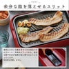 中央のスリットから、余分な脂や水分が油受け皿に落ちるようになっています。